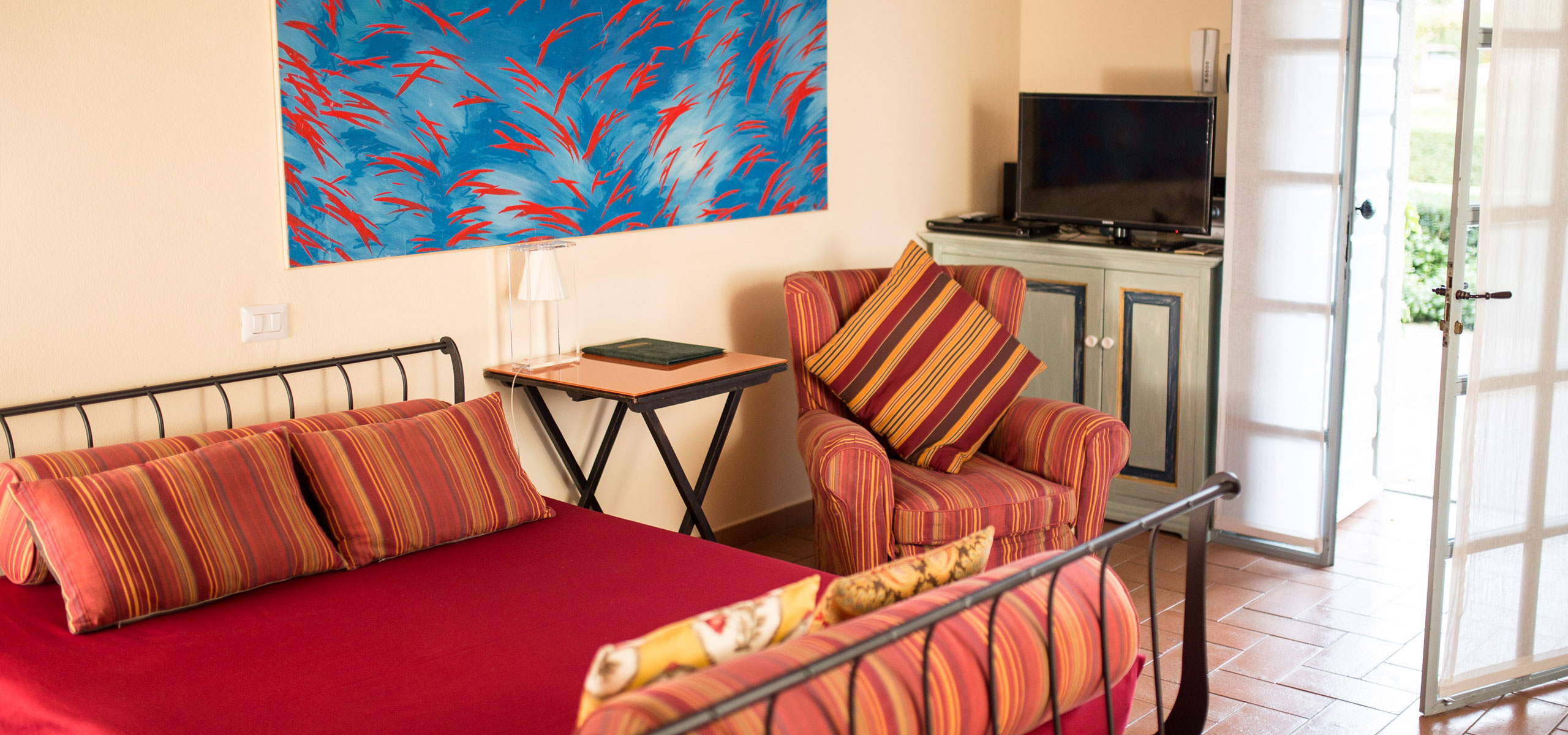 Posto a piano terra sul lato anteriore del giardino, è un ampio monolocale con una piccola zona cottura e un bagno predisposto per ospitare anche persone con disabilità